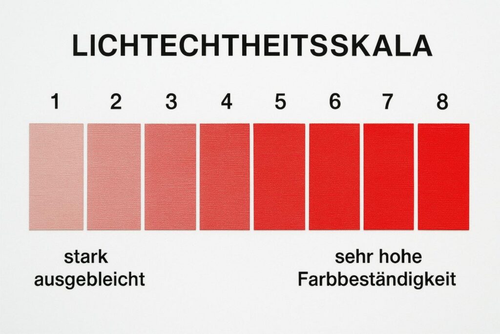 - Lichtechtheit: Werte zwischen 6 und 8 sind sehr gut. So bleiben Farben lange schön.
