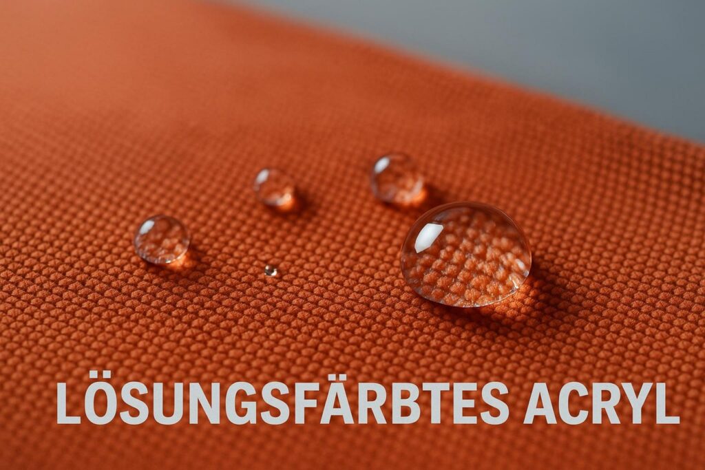 Acrylstoff gilt bei vielen Gartenschirmen als eine der besten Lösungen, vor allem wenn es um lange Haltbarkeit und stabile Farben geht. Besonders gut sind spinndüsengefärbte Acrylfasern. Hier sitzt die Farbe nicht nur außen, sondern ist von Anfang an in der Faser. Dadurch bleicht der Stoff selbst bei starker Sonne nur sehr langsam aus.